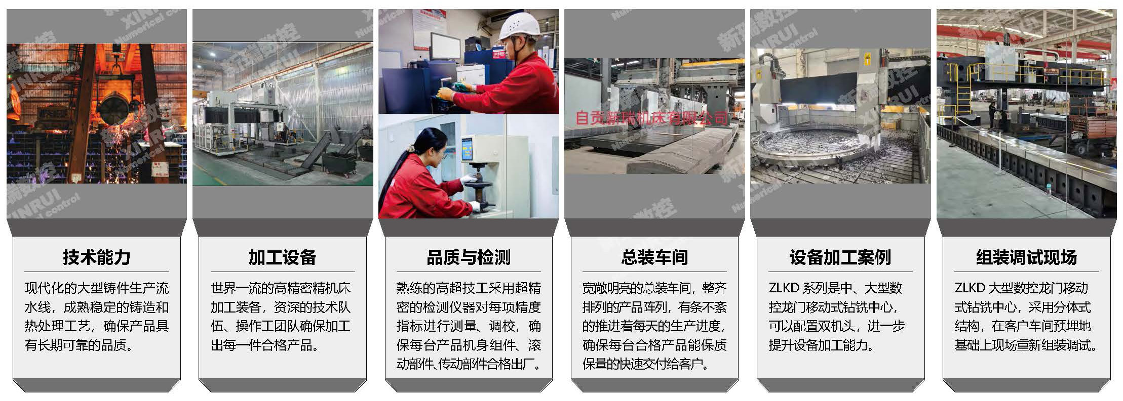 一ZLKD系列龙门移动式钻铣中心,由于机身庞大,所以采用分体式结构。在总装车间完成总装测试后,拆卸成几部分运送至客户车间,在预埋基础上,重新组装并调试至总装测试标准。整机采用模块化设计,零部件运用三维软件设计、进行了有限元力学分析。主要部份为箱型多筋结构、树脂砂高牌号精蜜铸件。铸件经退火、时效粗加工后二次回火处理,在精加工、精磨制成。选用了知名品牌直线导轨、滚珠丝杆及预紧螺母、直联高速主轴单元、优质联轴器、可靠的润滑、防护、机械系统、数控系统、气源、冷却、排屑装置,性能稳定可靠,精度高、速度快、完全可以与国一线类似机型媲美,可以批量装备,放心使用,已被广泛应用风电机法兰盘、管板、大型铸造模具雕刻、火电核电锅炉高压管、火箭壳体、高铁动车车架、大型机械、大型石化机械、等行业零配件钻孔、攻牙、铣削、镗削、雕刻等加工,可与专用工装夹具、四轴转台、四轴桥板、五轴转台配合使用。