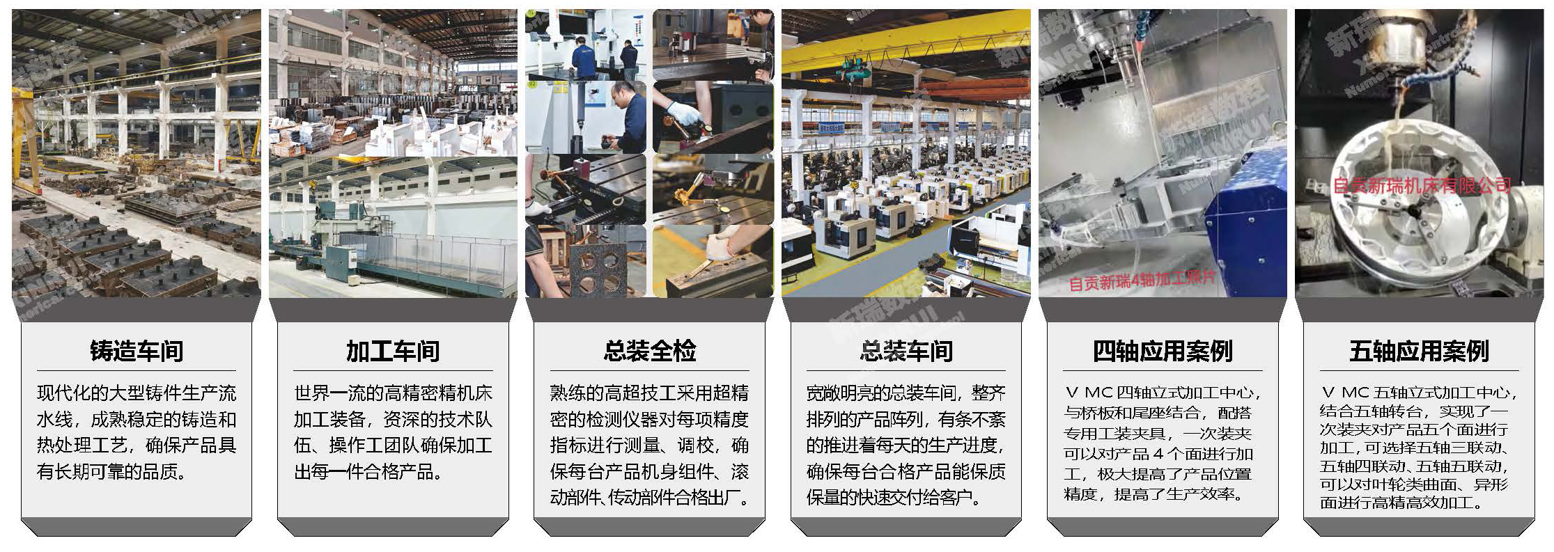 一VMC系列立式工中心,整机采用模块化设计,零部件运用三维软件设计、进行了有限元力学分析。主要部份为箱型多筋结构、树脂砂高牌号精蜜铸件。铸件经退火、时效粗加工后二次回火处理在精加工、精磨制成。选用了知名品牌直线导轨、滚珠丝杆及预紧螺母、直联高速主轴单元、优质联轴器、可靠的润滑、防护、机械系统、数控系统、气源、冷却、排屑装置,性能稳定可靠,精度高、速度快、完全可以与日本、台湾等类似机型媲美,可以大批量装备,放心使用,已被广泛应用于汽配、摩配、电子、航空航天、高铁动车、碳制品、五金、机械产品、石化、液化燃具等行业零配件钻孔、攻牙、铣削、镗削、雕刻等加工,可与专用工装夹具、四轴转台、四轴桥板、五轴转台配合使用。